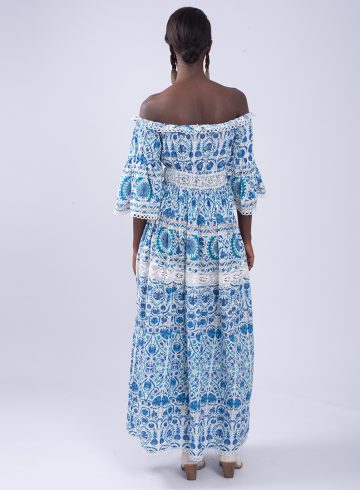 A LONG COTTON ALL OVER PATTERN DRESS WITH LACE DETAILS.IT HAS AN...