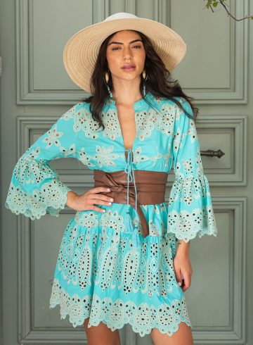 EMBROIDERED EYELET LACE PATTERN KAFTAN