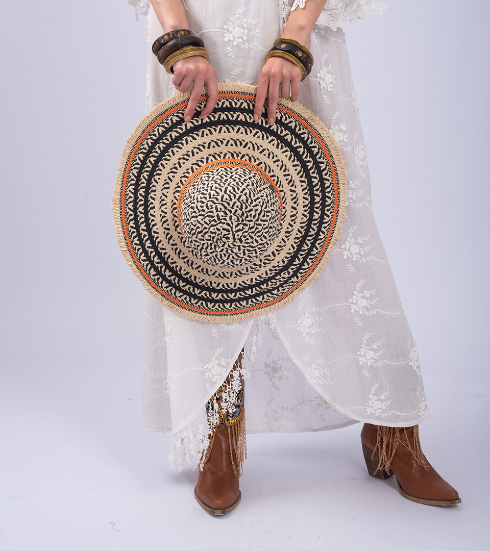 ΨΑΘΙΝΟ ΚΑΠΕΛΟ ΜΕ ΣΧΕΔΙΟ ΣΕ ΜΠΕΖ / ΜΑΥΡΟ / ΠΟΡΤΟΚΑΛΙ ΧΡΩΜΑ
